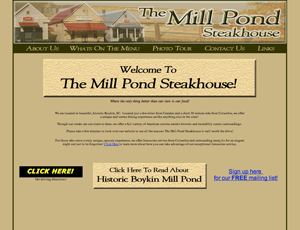 Offering a unique and serene dining experience unlike anything else in the state. The Mill Pond Steakhouse offers a full variety of American cuisine amidst a historic and scenic setting.